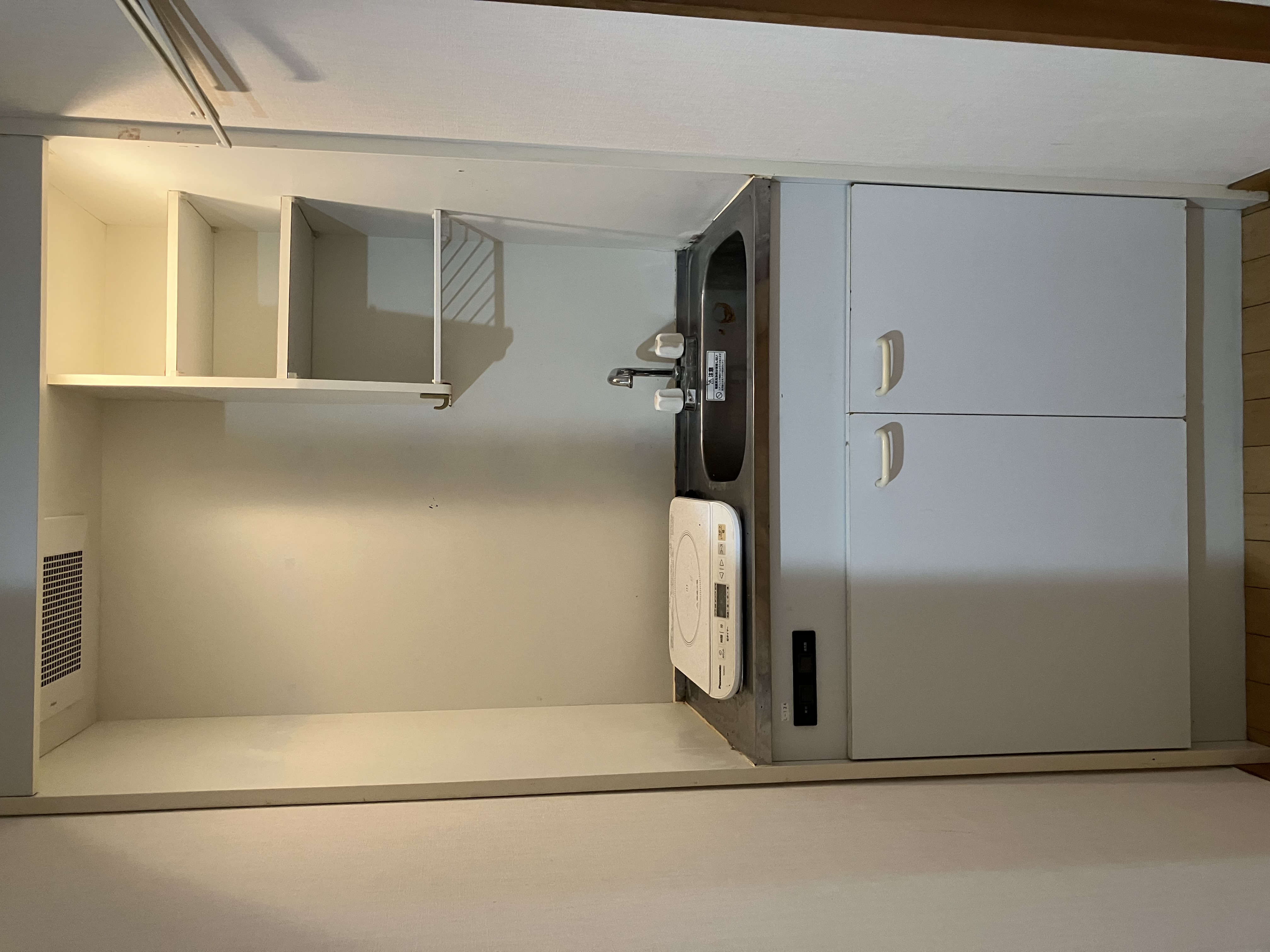 - 台所(電気調理付き)、緊急通報装置2ヵ所(居間・トイレ)、収納2ヵ所(室内はクローゼット・廊下は鍵付収納)、冷暖房のエアコン完備