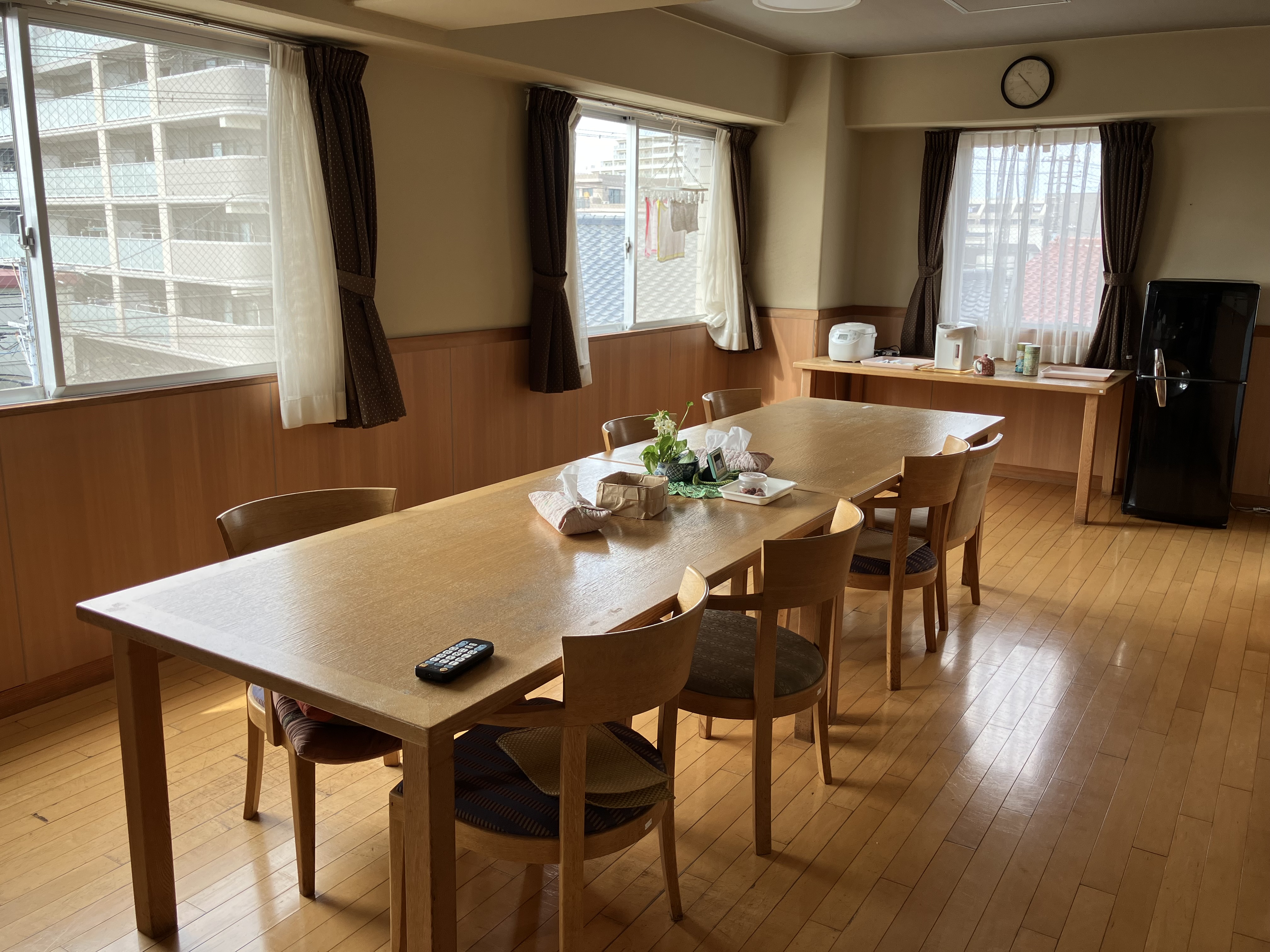 - 支援ハウス内には、共同のお風呂、洗濯機(コインランドリー)、食堂などがあります。